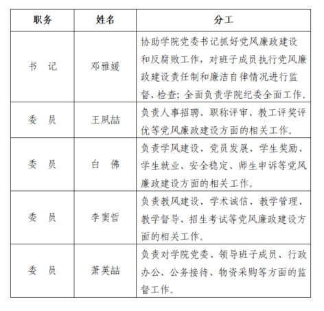 bg大游官方网站纪委委员及其分工